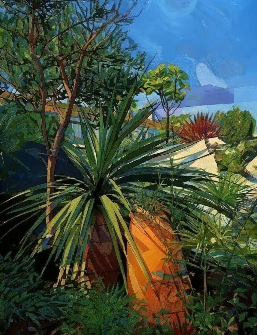 Hidden under our rogue Pampas Grass was this palm tree and to a degree the mid to lower levels of the gumtree. Now the Pampas has had serious remedial cutting-back the almost unbelievable growth of the palm tree has been revealed. He was certainly on Death Row for the last 5 years but 2 years ago I moved the Rhubarb Forcers very close to where he was planted. Last year he did not do much that I noticed but under cover of far too much Pampas Grass he has made a ridiculous achievement of growth. I wonder if the Pampas and the Black Gum are also benefitting from the close proximity of dog and coffee organic matter. Who could begin to guess, but now we are down to just one dog I wonder if supply and demand may be a problem..
