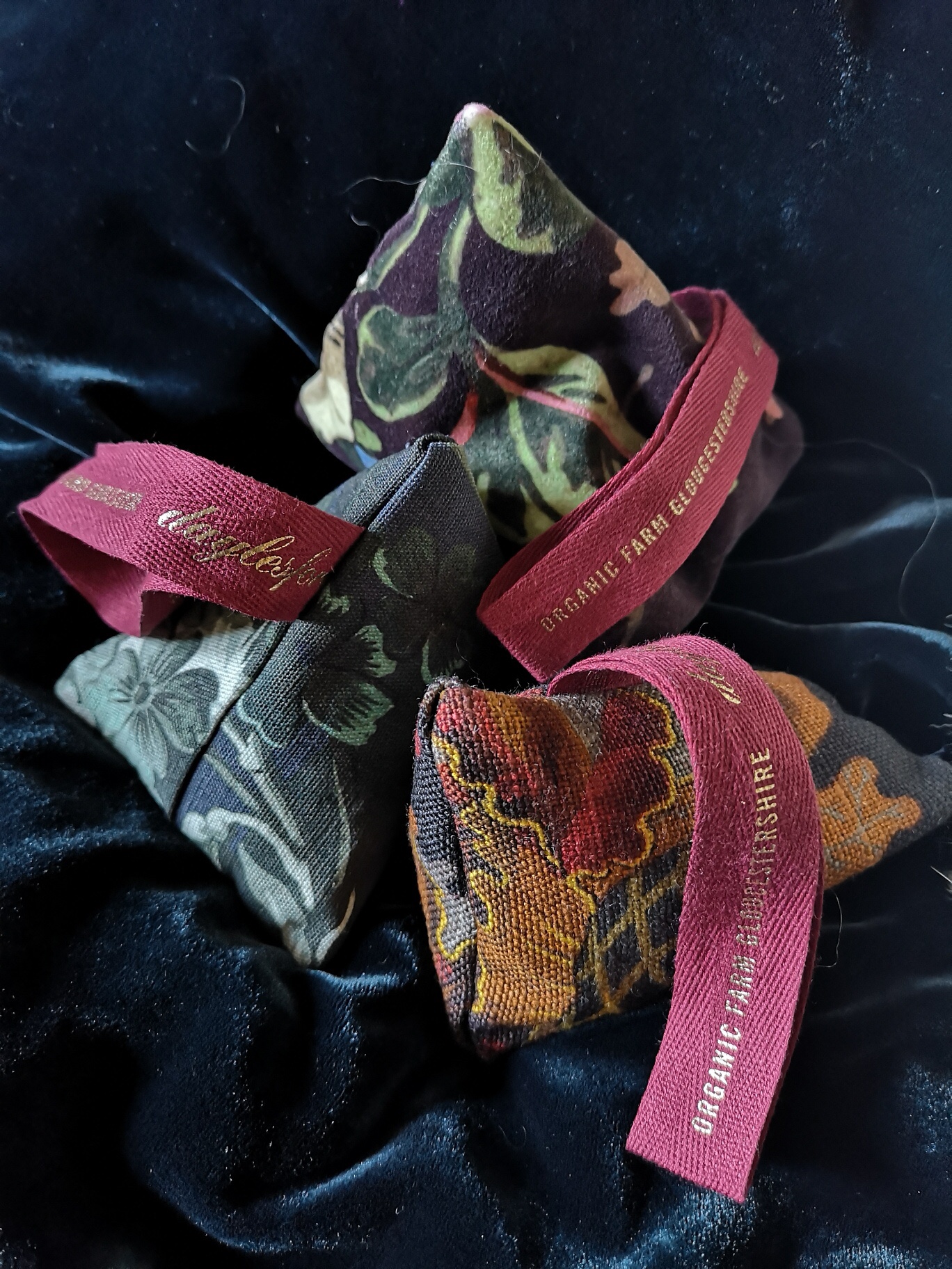 Home made pattern weight using recycled fabric swatches and ribbon from Christmas gifts.