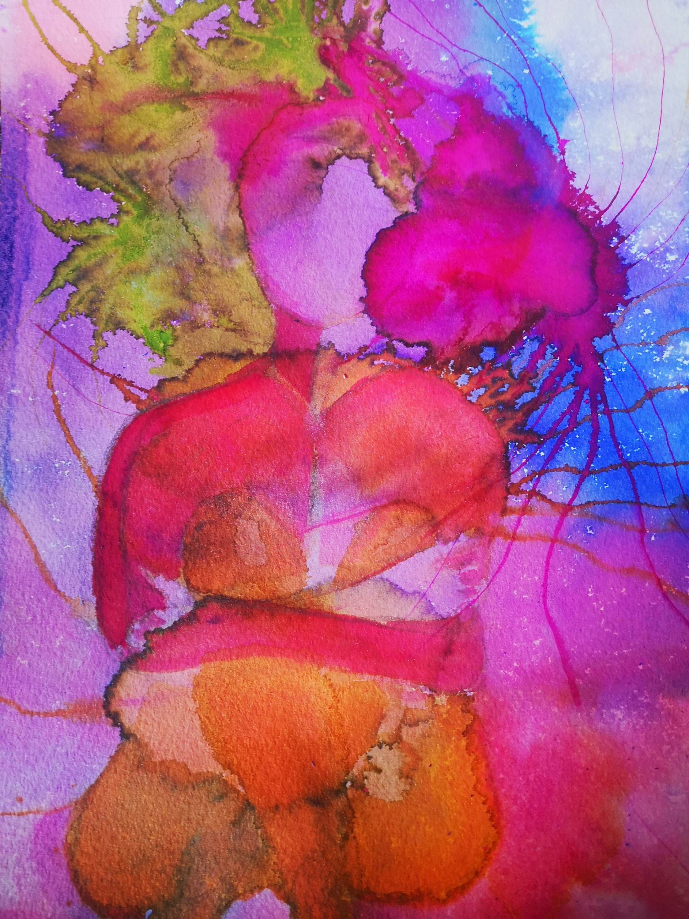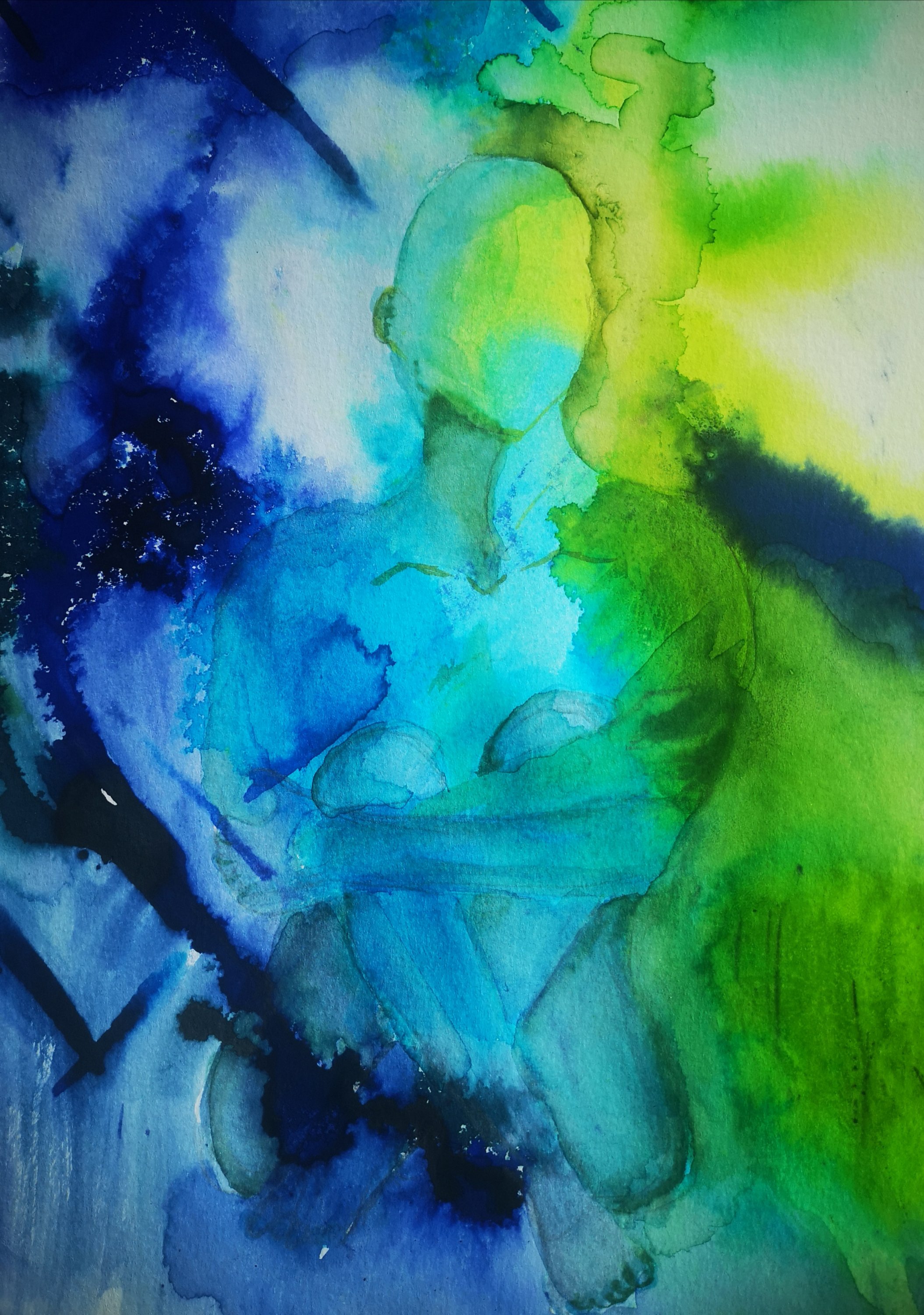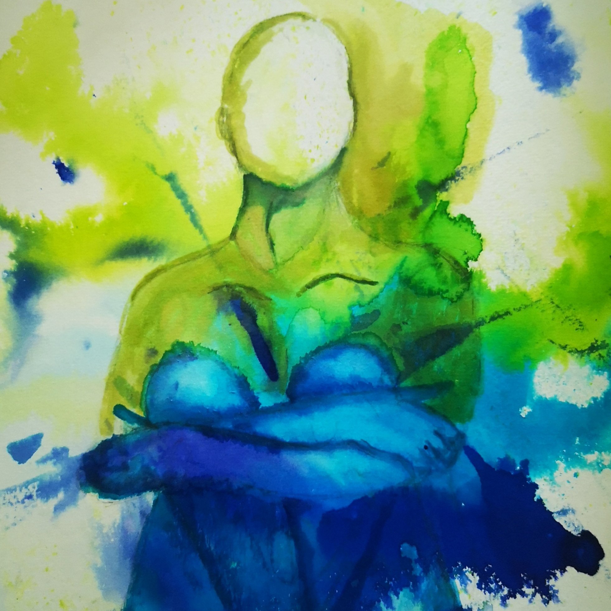 Roberto Fabelo has summed us up pretty well with his sculpture.Coffee has fueled my creative endeavours today todays prompt is, as you know 3D.I’m still trying to craft in watercolour a 3D image out of swirls of paint. Less obvious than the previous painting my androgynous person only just gains 3 dimensions. Maybe more coffee worship is needed. Thankfully it’s a fairly harmless fetish.