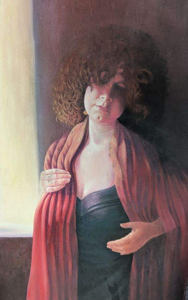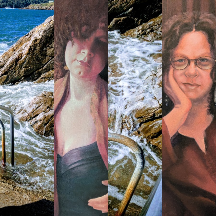 If I posed now the hair would be grey, the black garment would be a swimming costume and the deep jewel red would be a towel or robe. Cold water swimming is my superpower, I wish those younger women had done it because it really gets me through the tough days. And those two younger versions of me had some really tough days.