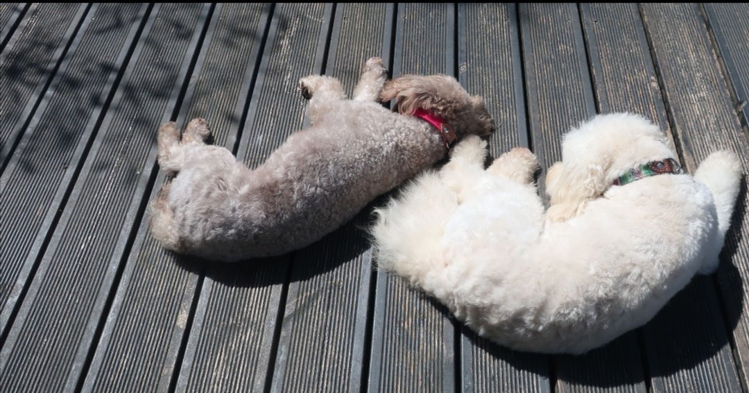 To make the most of the idiomatic moment I can throw in two pictures of fluffy dogs making hay while the sun shines, one of them hay coloured.