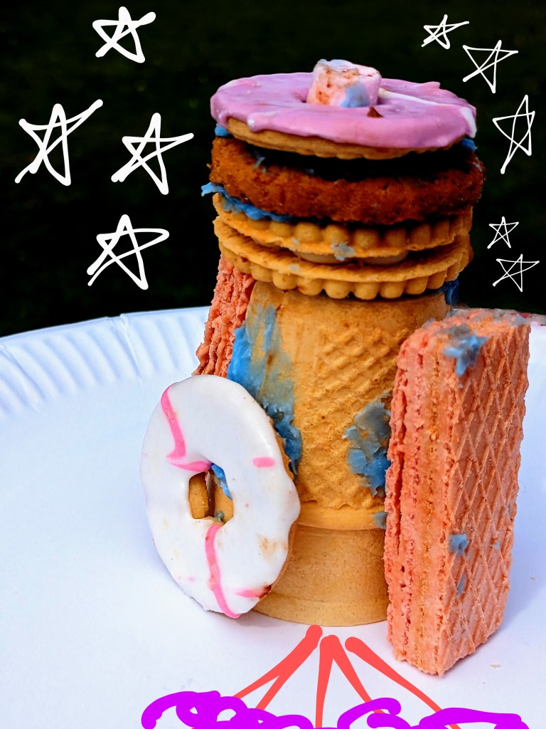 We played tennis with biscuits to test their relative aerodynamic qualities and then built a rocket.