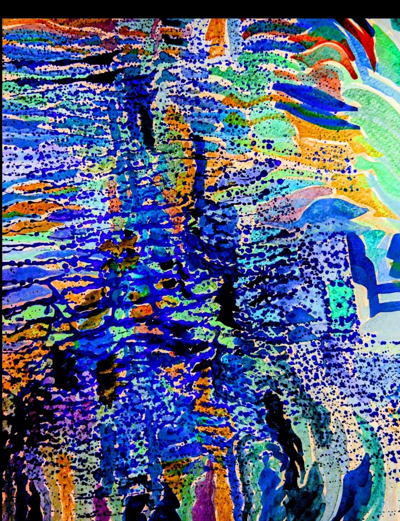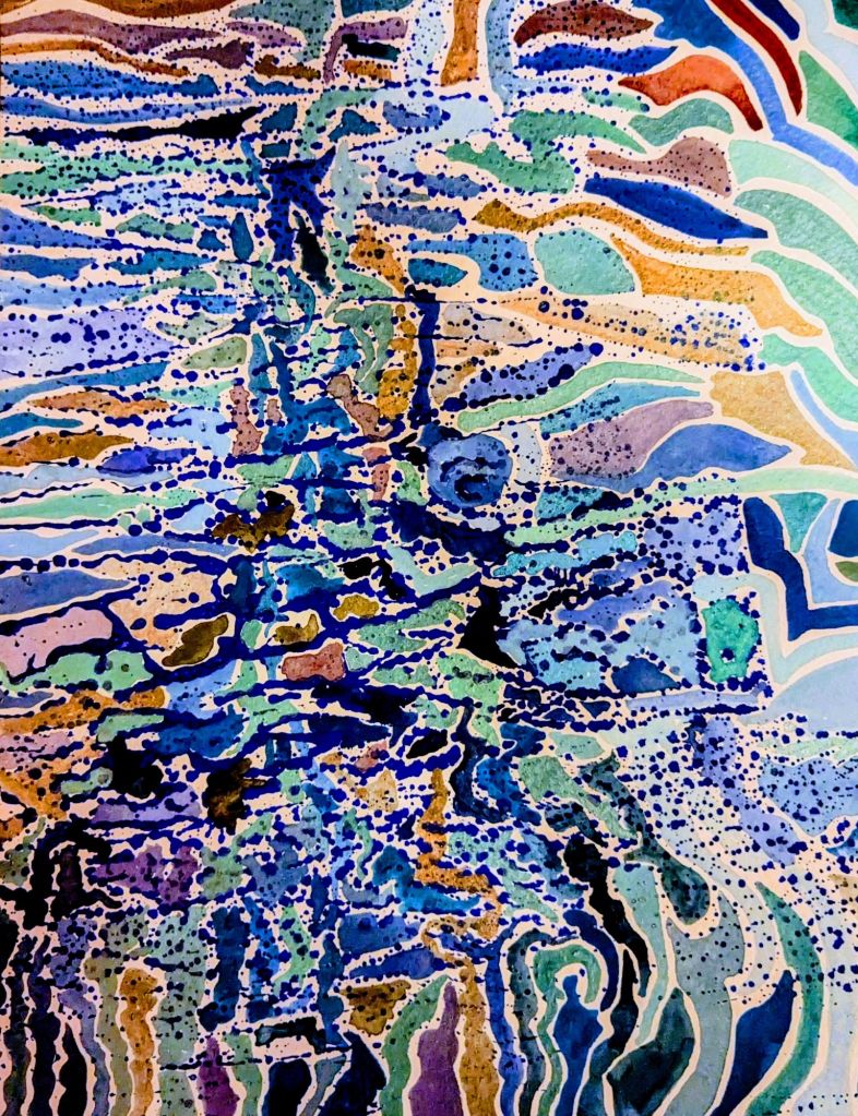 Usually, I can easily paint and talk but Santa was not the most unusual man in the cafe. A gentleman approached to talk about my art for about 45 seconds and then talked about himself for the next minutes. Even my absolute dedication to getting paint on paper didn’t stem his flow of self-obsession. I was polite and responded appropriately while avidly painting away.