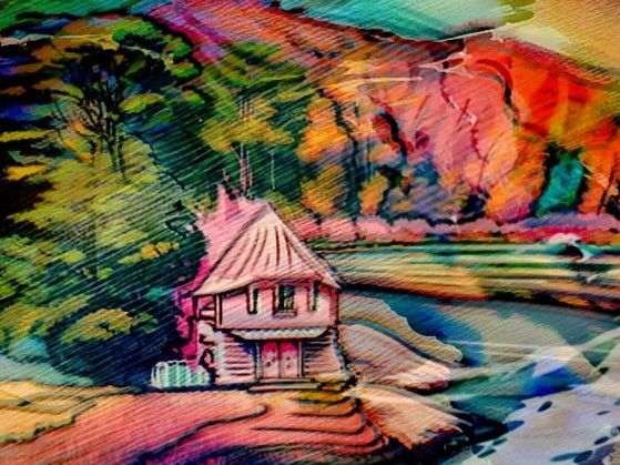Bantham boathouse doesn’t really look like this but I wanted to create an image that depicted a really hot day and the hubbub or cacophony of sound that floated over the car parks as families spilled out of their cars for a day at the beach at the height of summer. The image is unreal in the way that it might be depicted in an animated film. All a bit too much going on. Bantham is a regular spot for us to visit out of season when the world is calm and the beaches are empty.