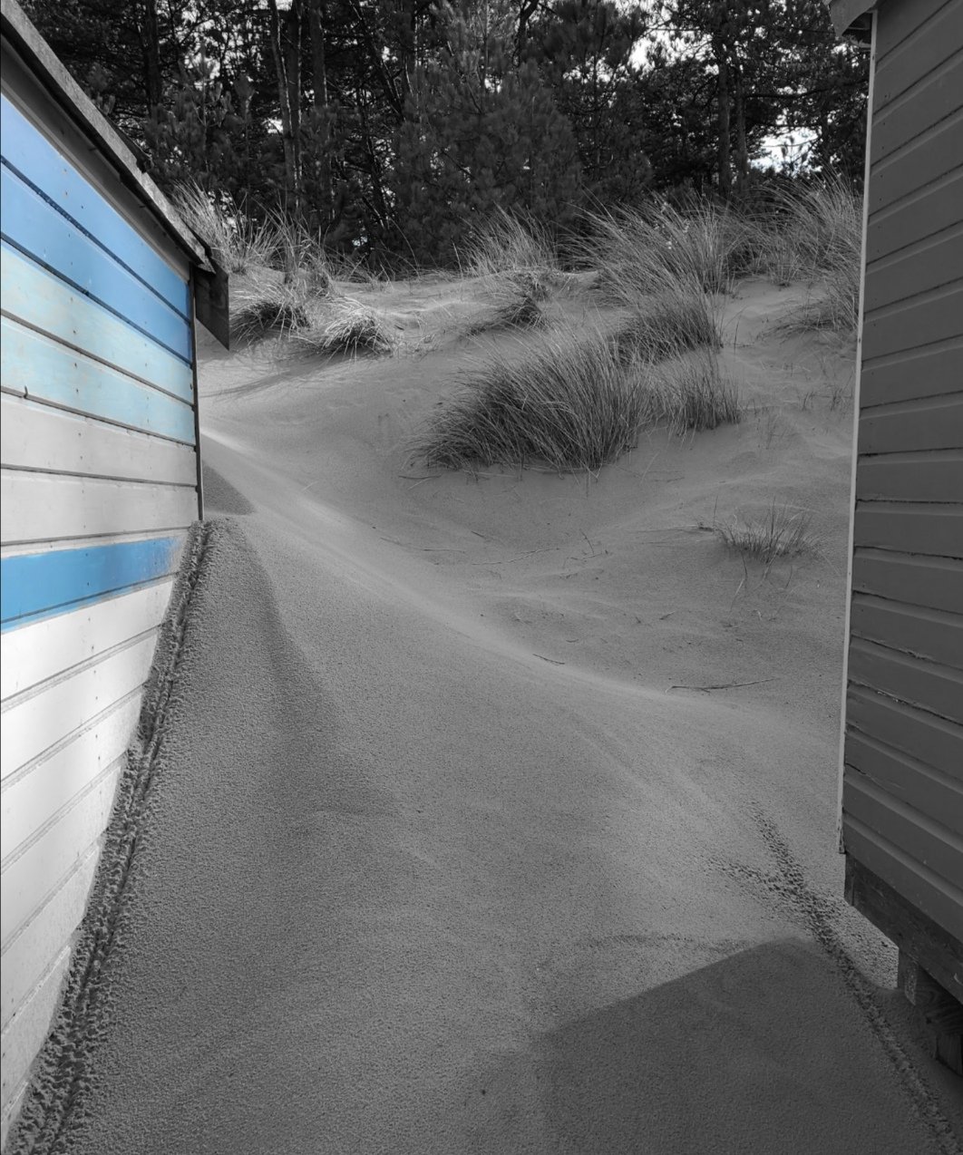 I am always a sucker for a row of beach huts. The ones above at Knoll Beach were not really very photogenic, neither so pristine that they were perfect or so decrepit that they were wistfully vintage. Awkwardly they were just a bit shambolic, Fixed up with a variety of measures to help them withstand the storms of winter. Not being a proper photographer is wonderfully freeing. To get this image I have shamelessly ramped up the saturations and then selectively desaturated anything that wasn’t a warm yellow/orange. Giving this row of beachside huts a uniformity they dont really have.