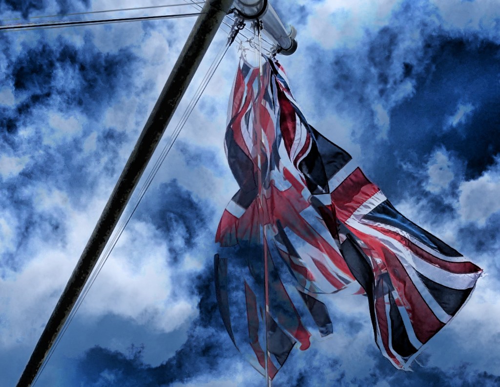 Two lovely blue pictures from yesterday to accompany the blog. We sat under the Flagpole in our local dockyard to watch the Wimbledon Tennis Final on a big outdoor screen. I took this multi exposure shot to capture the flag in the breeze.