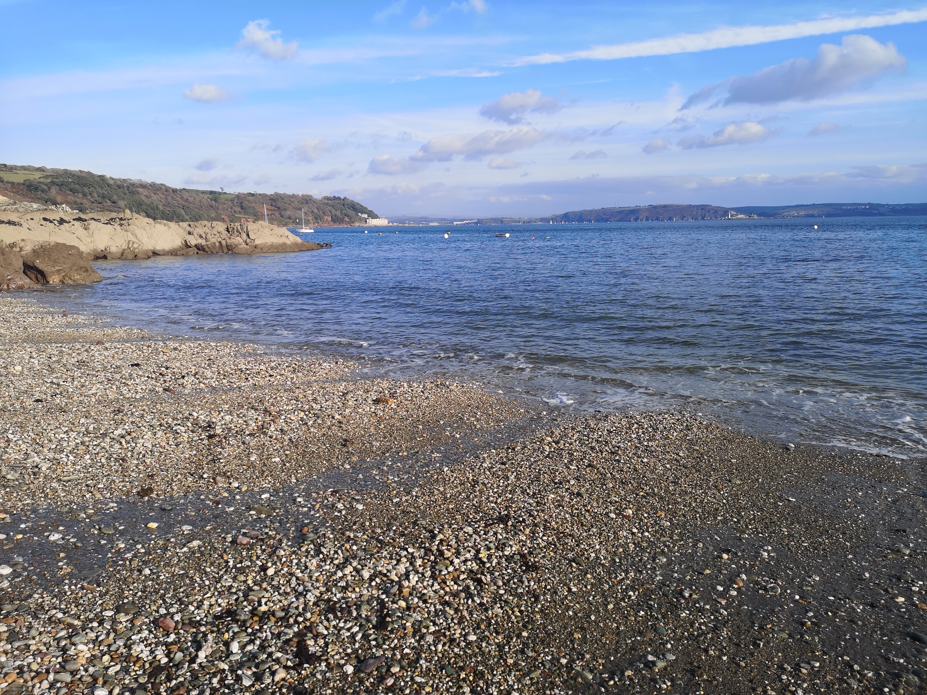 Kingsand and Cawsand are coastal villages in the ‘forgotten’ corner of South East Cornwall. Every bit as beautiful as other, more famous, villages in Cornwall they remain largely undiscovered . They were a big part of our lives when we rowed for the local gig racing team. Our walk on Saturday took on a familiar pattern. The beaches are available for dog walking now the summer season is over. This was our primary reason for going as well as a birthday lunch. Gig rowing reared its head, or more accurately its bum almost the minute we arrived in the village. We stopped just by the Rame Gig sheds and a familiar voice shouted out. ” Look who it is, we were only talking about you a week or two ago when we were at Port Isaac ” We stopped gig rowing ten years ago so it must have been something memorable. ” We were at Port Isaac and talked about the time you had terrible trouble with your bum” Not for us the glamour of a memorable race, cleaving through heaving surf, oh no, memorable because a nasty blister gained in a 23 mile London River Race had impacted, in all senses of the word, on a performance more than ten years ago at Port Isaac. Obviously this was all said with love and humour. After hugging sweaty rowers fresh from a training session we moved on to the first of the days beaches.