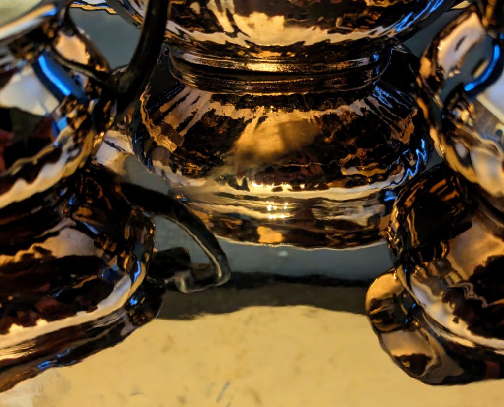 Chance brought their artifacts together in the same charity shop. By sewing the beads onto the edges of the crochet I am bringing the two unknown women together to create something new. Something useful even. A beaded jug or bowl cover to deter insects.