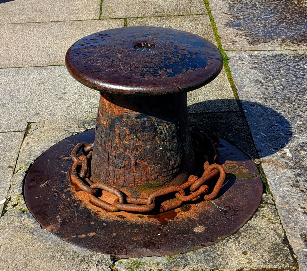 Its historically old cast-iron is being turned into a bark-like surface from seawater and dog pee. Maybe the last land bollard that Captain James Cook’s dog, Pugwash, pee’d on before setting off for Newfoundland or Australia and New Zealand.
