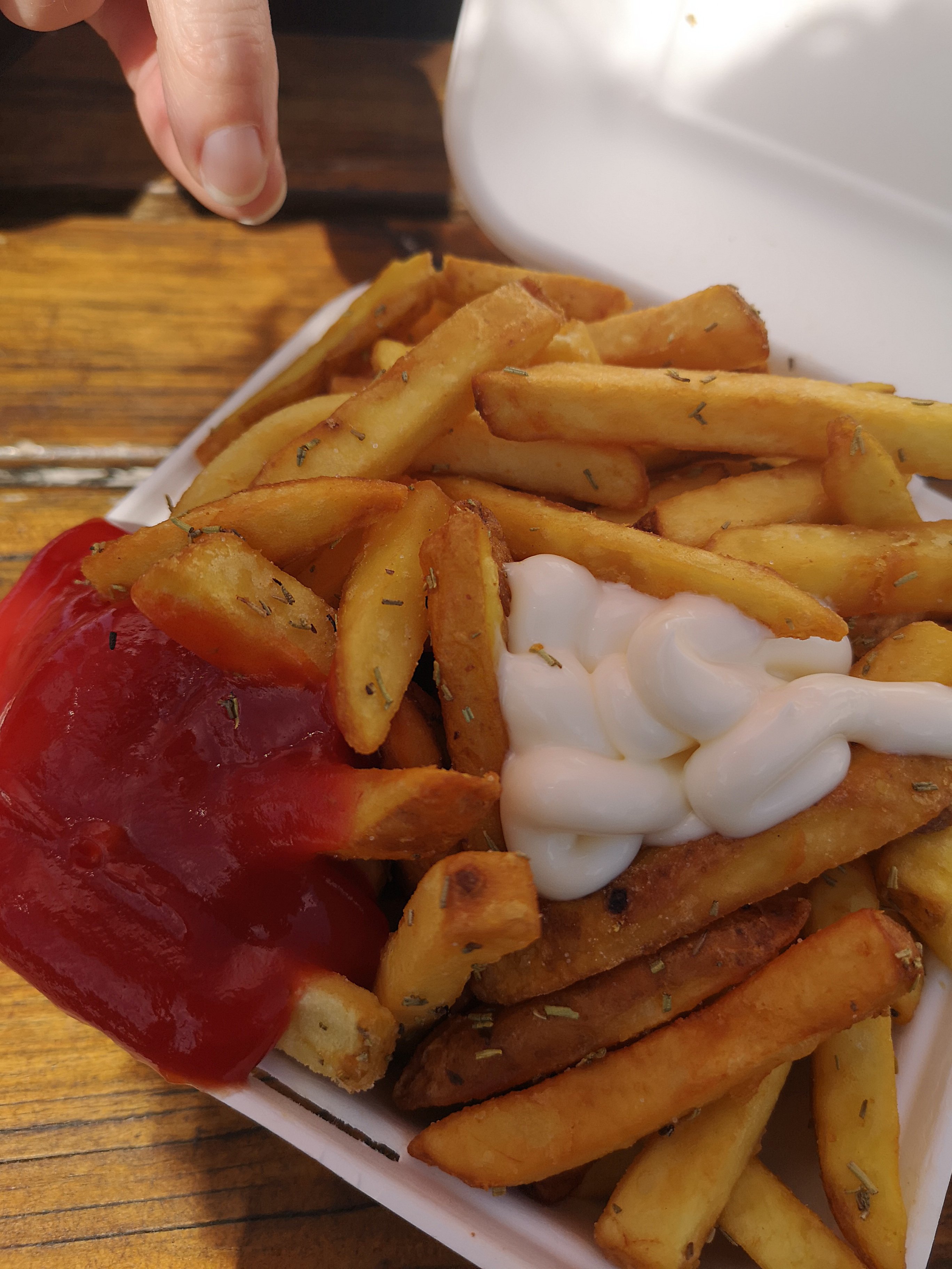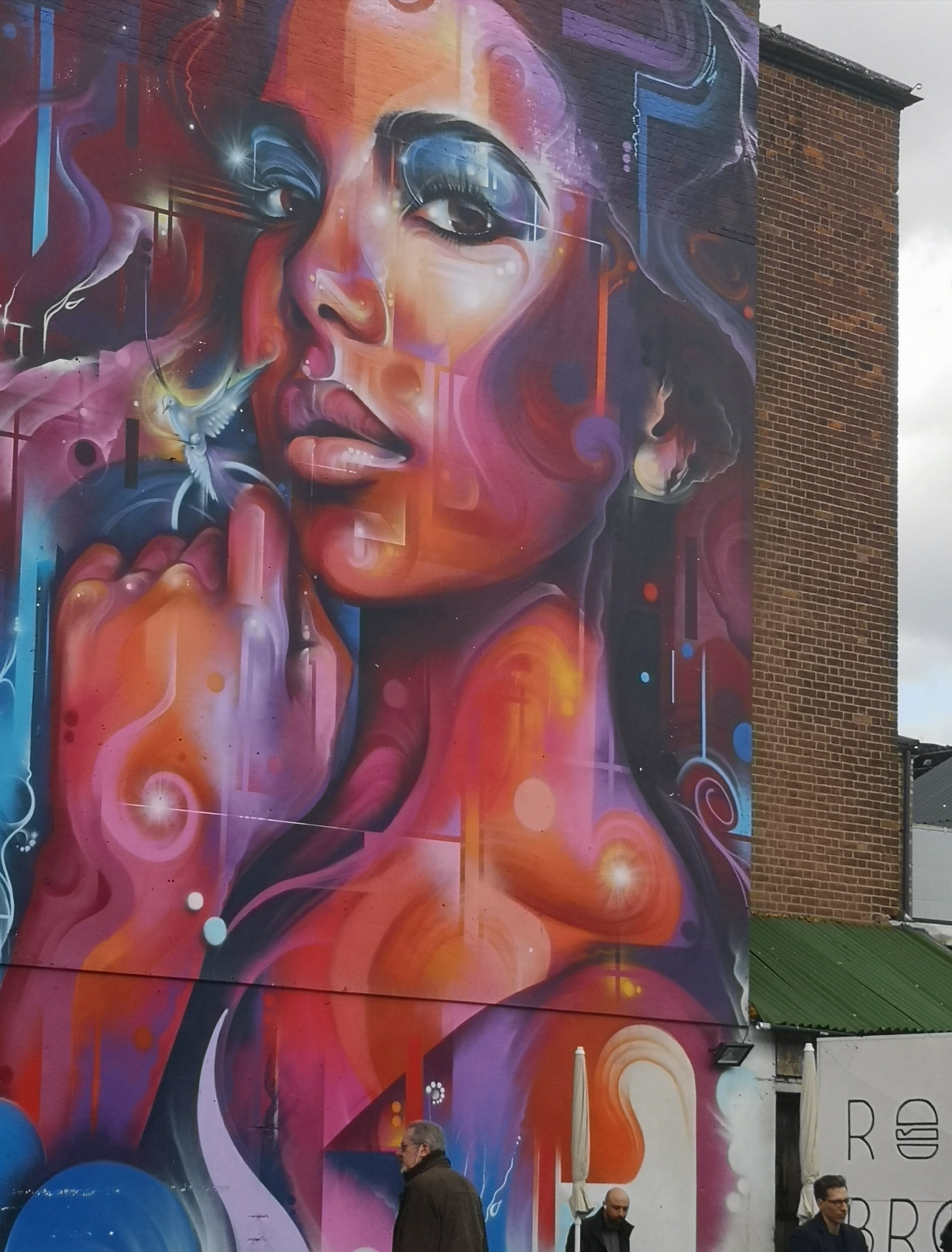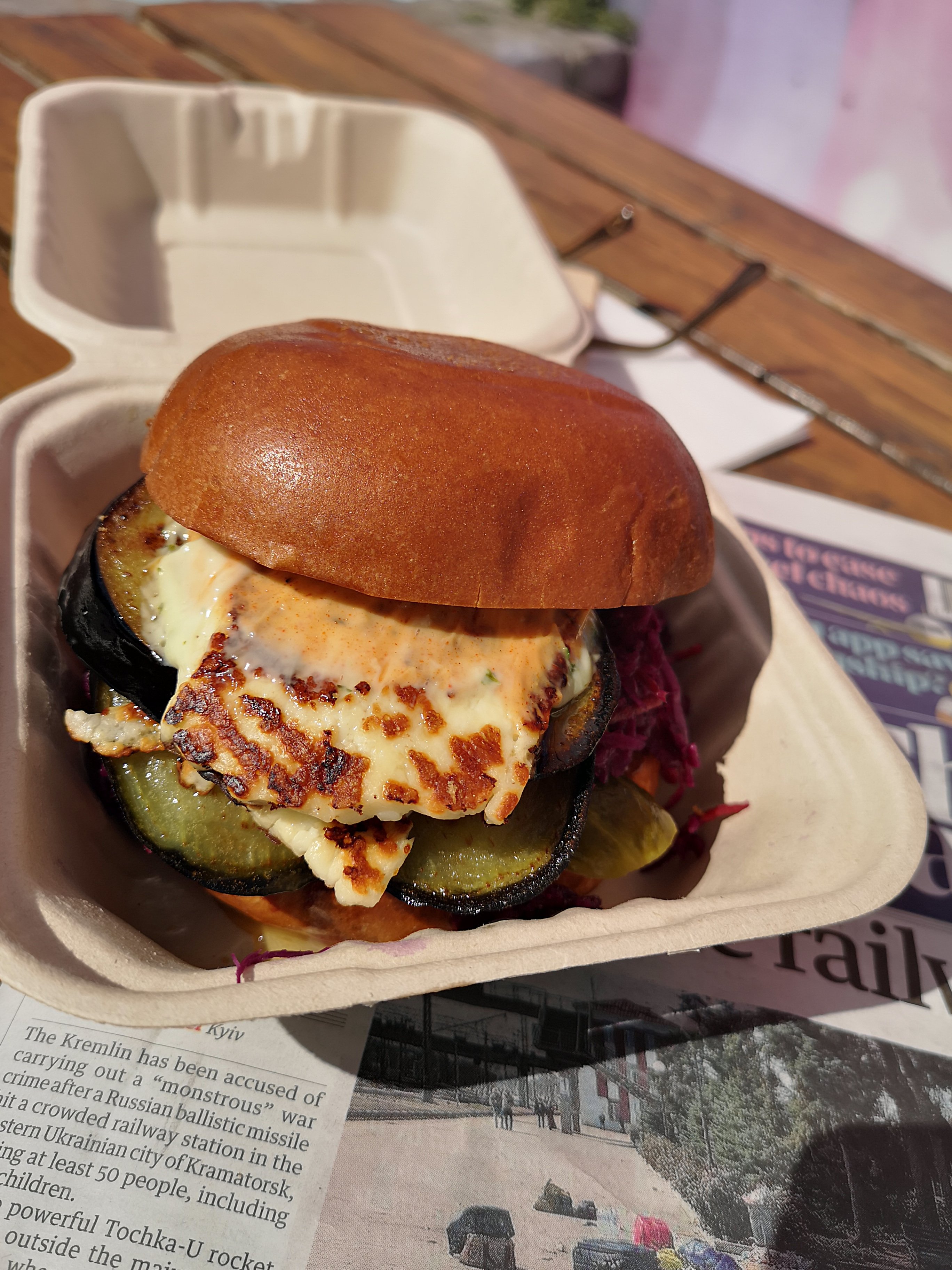 Crystal Palace shopping was fueled by a Roti Brothers Vegetarian burger and their signature Rosemary Chips. Sitting beneath some fabulous street art.