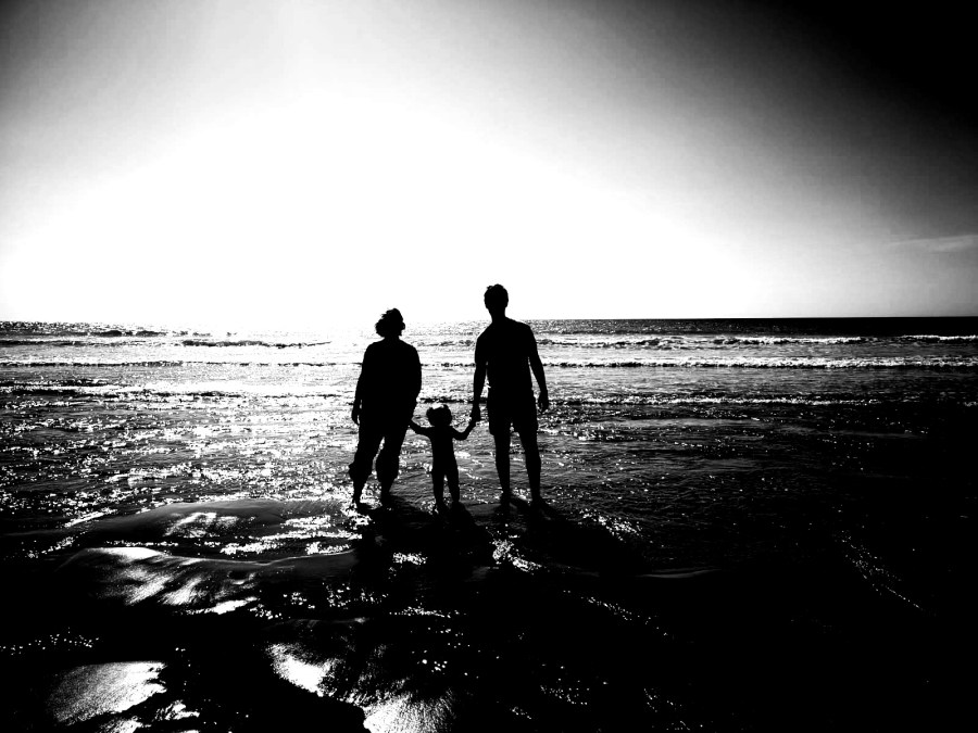 Three generations standing in the flisvos of the retreating tide.