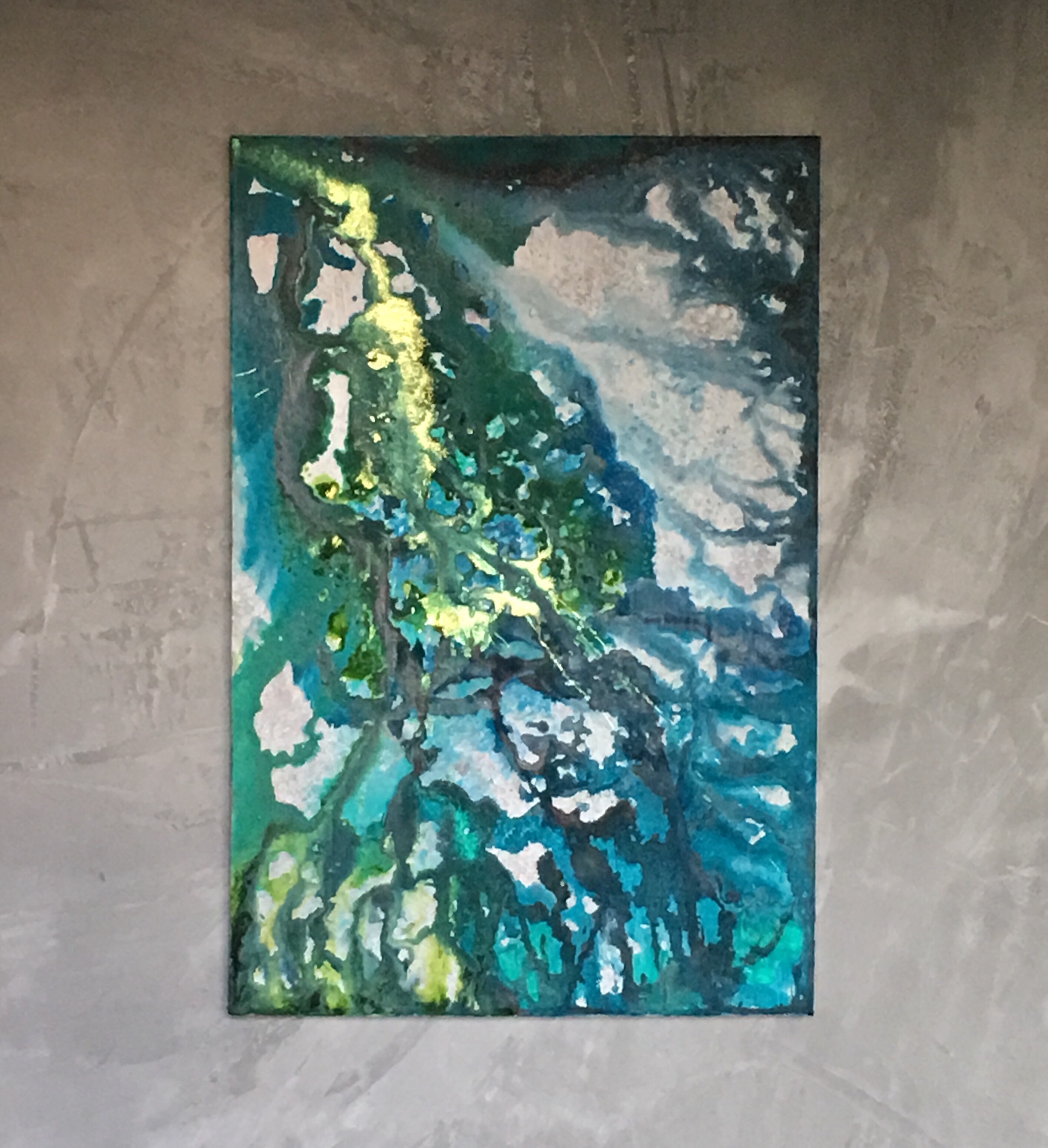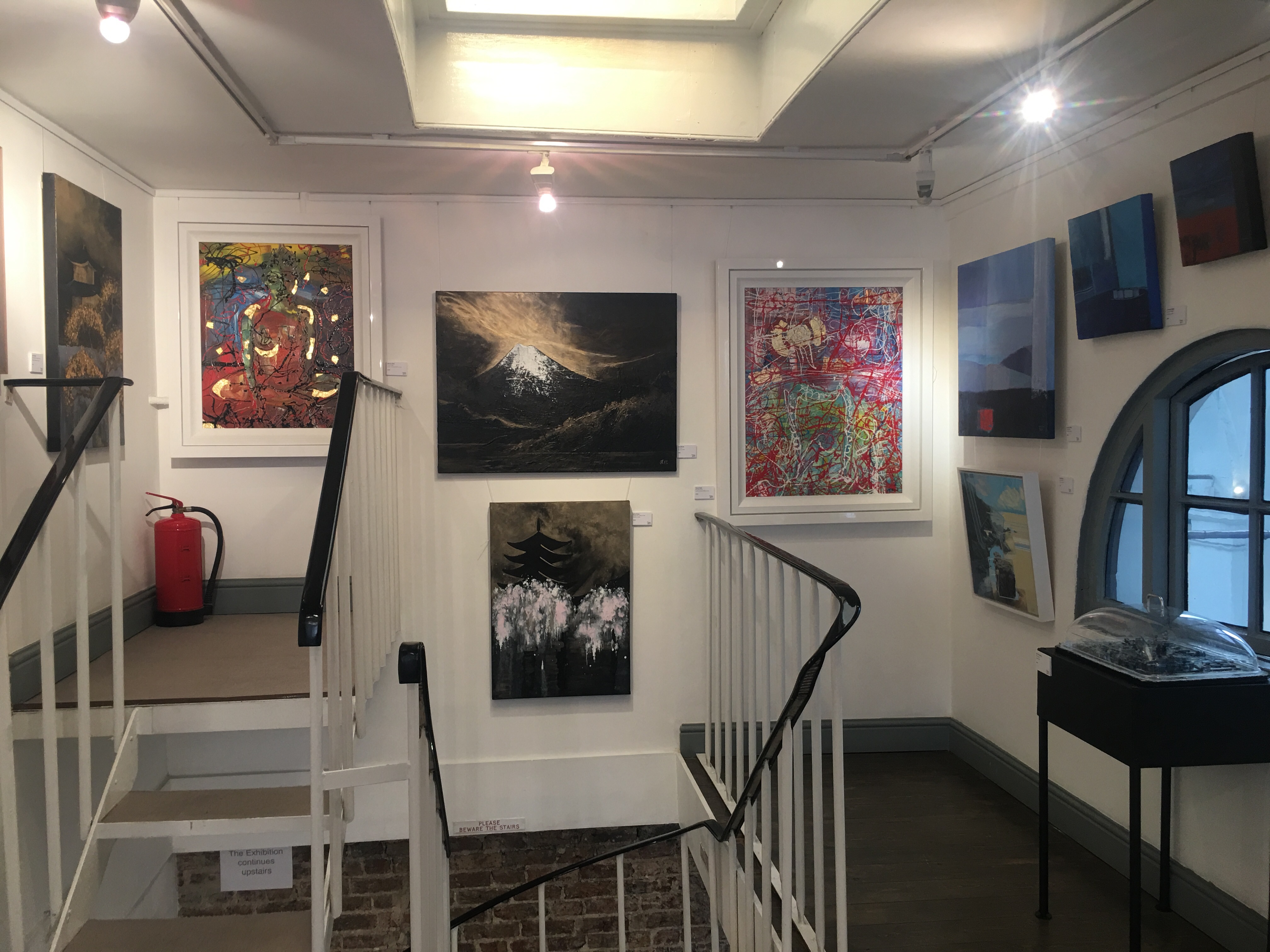 Space was at a premium as the peripheries of the rooms were filled with proud and attentive parents who marveled and photographed the skills and achievements of their offspring. Chunky stone stairs led me upwards to smaller spaces. My nose led me in the direction of an artist who was using oil paints, brilliant jewel like colours shone off canvasses, coupled with the smell it was a heady mixture. Sadly the artist was missing, (everyone needs a wee sometime).