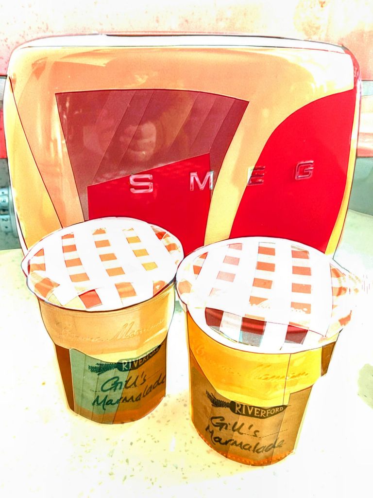 In a perfect reflection of my genetic make-up, I love marmalade. Until recently there was only ever one Marmalade for me. Frank Coopers, Thick Cut, Oxford Marmalade. From shared student homes to home ownership and settled domestic home maker, Frank Cooper has been my bitter preserve companion. More recently one of the Bobbers, Gill, has been sharing, with me,her short season Seville Orange, home -made marmalade. Gill is up there with Frank. A mass produced God and a small batch Goddess. They share the marmalade shelf now, Frank there all year, reliable. Gill fleetingly, only in season, both bitter to their core, both adored.