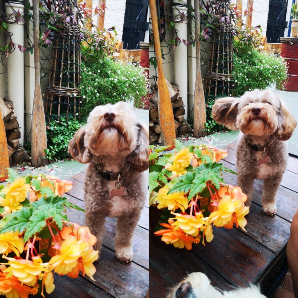 Yesterday was a day for basking in afternoon sunshine. Autumn may have arrived but the sunshine had forgotten and we sat, like lizards on hot rocks, taking in the late September sun. The wind however was very much in Autumn mode and swirled and nipped at us whenever we turned a corner between buildings. In truth the basking was accidental , we were only on one of our regular dog walks but we had stopped for a coffee and some people watching. Neither were exciting enough to be pondered about but the sunshine was lovely. For reasons which I don’t fully understand the water which accompanied our coffee arrived iced and with a straw. Leave two women with a straw in strong sunshine and this is what you get!