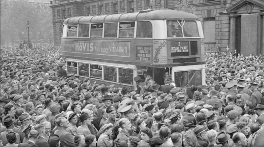 While we are in Gipsy Hill, on the route of the number 3 bus, we found a shot of a number 3 trying to get through Crystal Palace on VE Day.