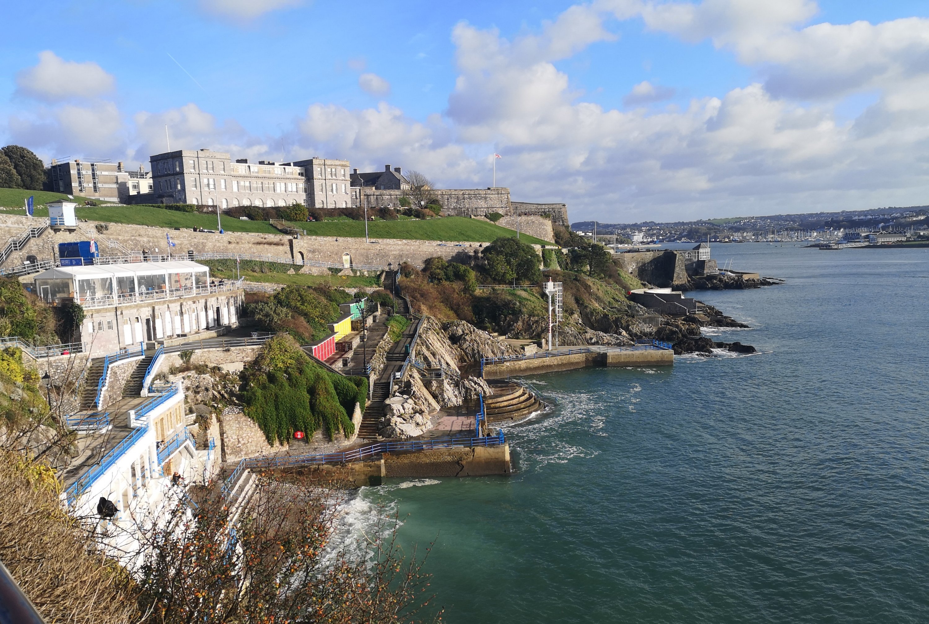 Plymouth was in fine form today, the sun was out and the sea and sky were blue.