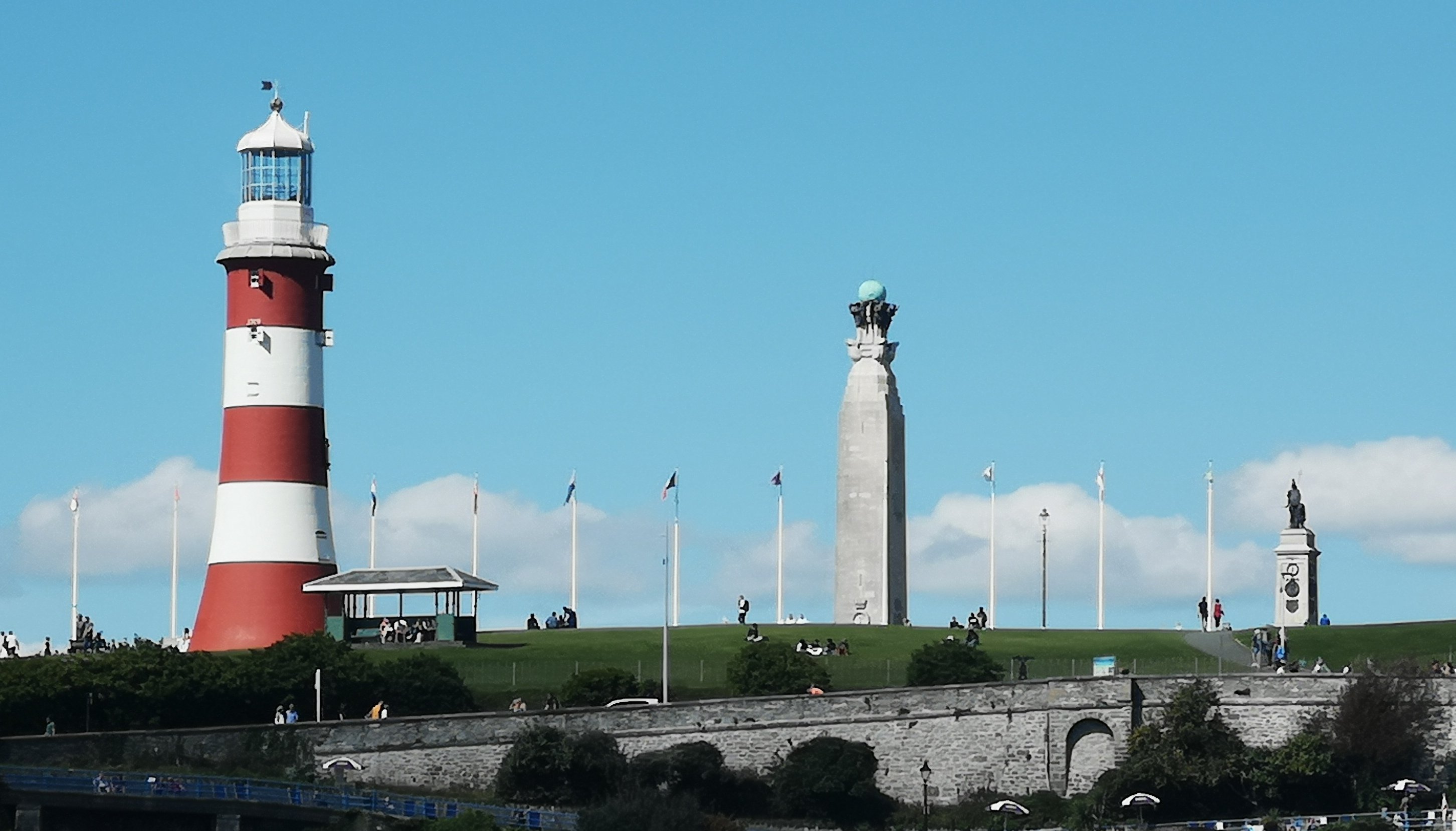 Plymouth Hoe, was gorgeous today which is an interesting coincidence given the links between Plymouth and the First Nations people of North America. Our walk did visit a significant Mayflower 400 site. More of that later.