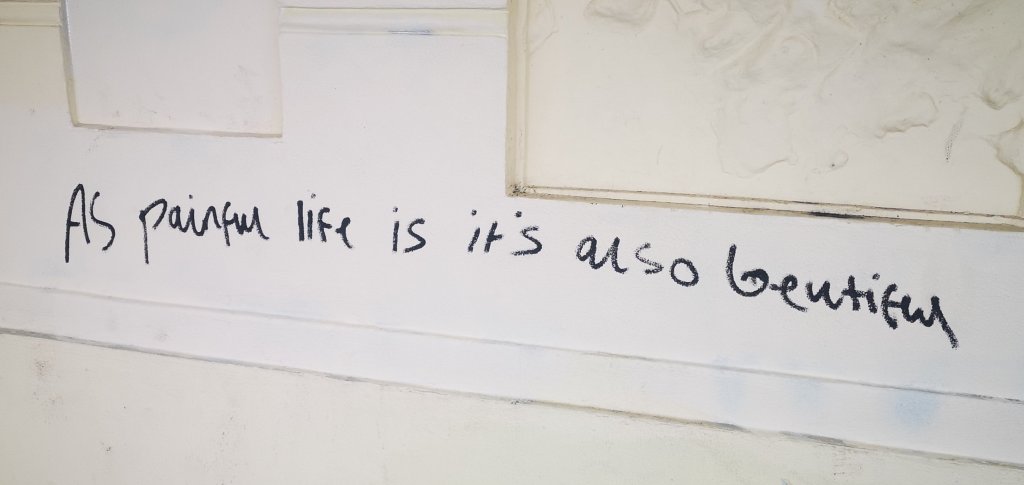Boxing Day has a tradition in our home of no traditions . It always has an organic free flowing style. Decisions are largely predicated by weather and participant enthusiasm and availability. Today despite the greige and the cold a walk on the Hoe was our chosen activity. Unusually for Plymouth we found some profound graffiti.