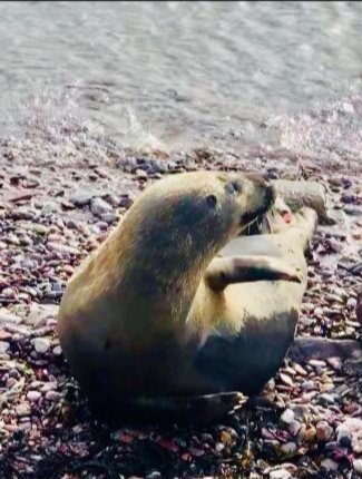 A birthday bob yesterday with some of the usual surprise guests. A warship sailing past as we are waiting to get in. We love a busy swim. However it may appear, we were not lined up to wave to homecoming sailors but were waiting for Spearmint the seal to swim away from our bay so we could start our swim. We love her but she is not invited to our Gatherings because there are restrictions and responsibilities that protect her. There was far more action in the next bay and attracted by the noise she swam off. We jumped in but probably had only ten minutes in the water before she returned. Current advice is to get out of the water and give her 100 metres space.