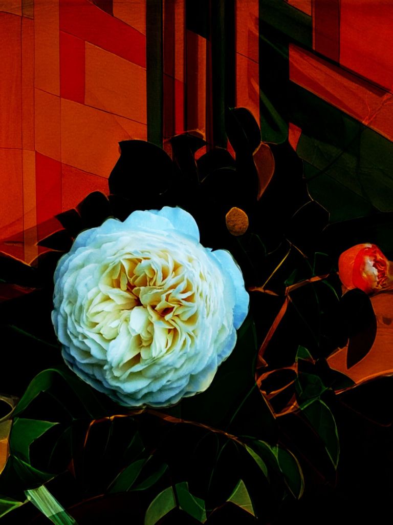 Claire Austin rose and the sharp shadows of night in a city yard.