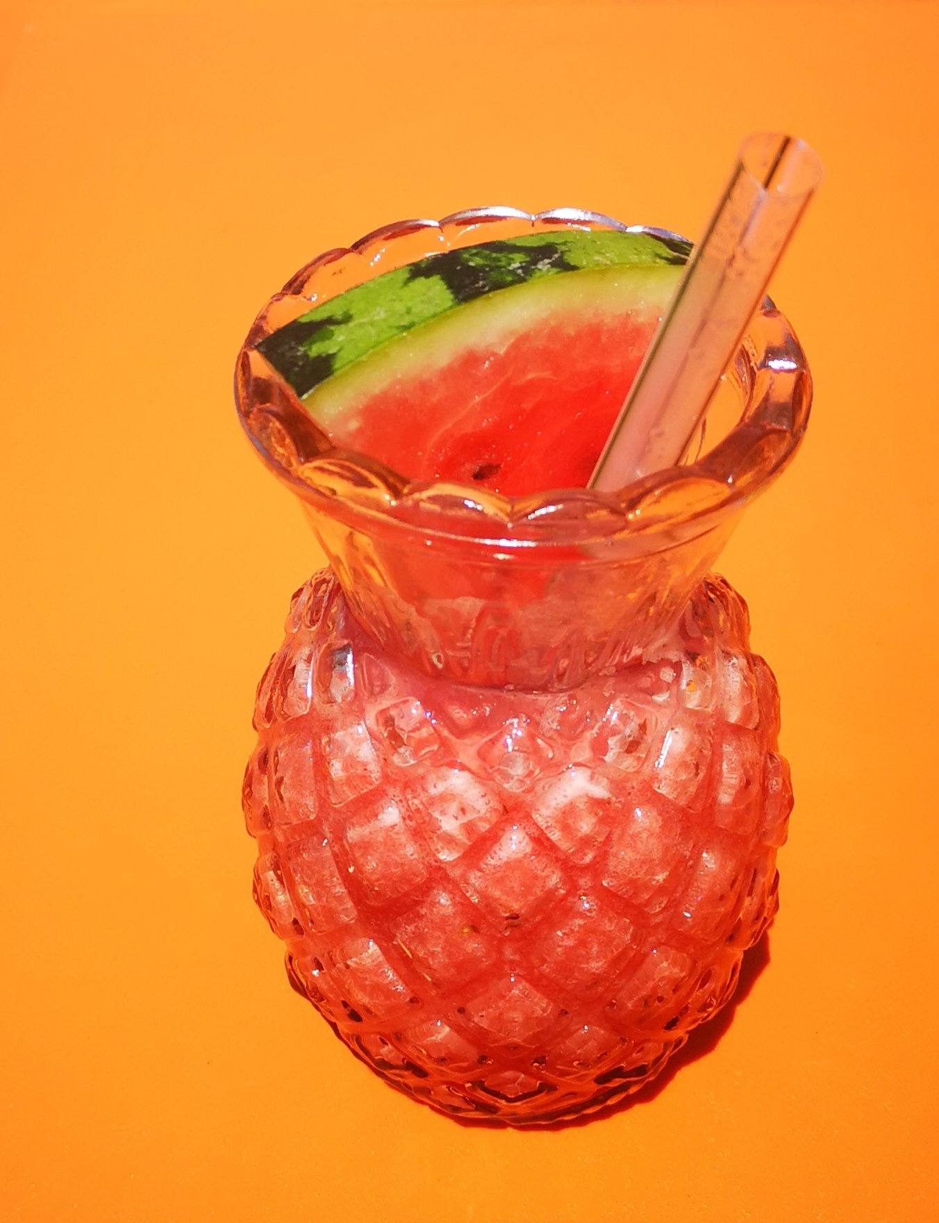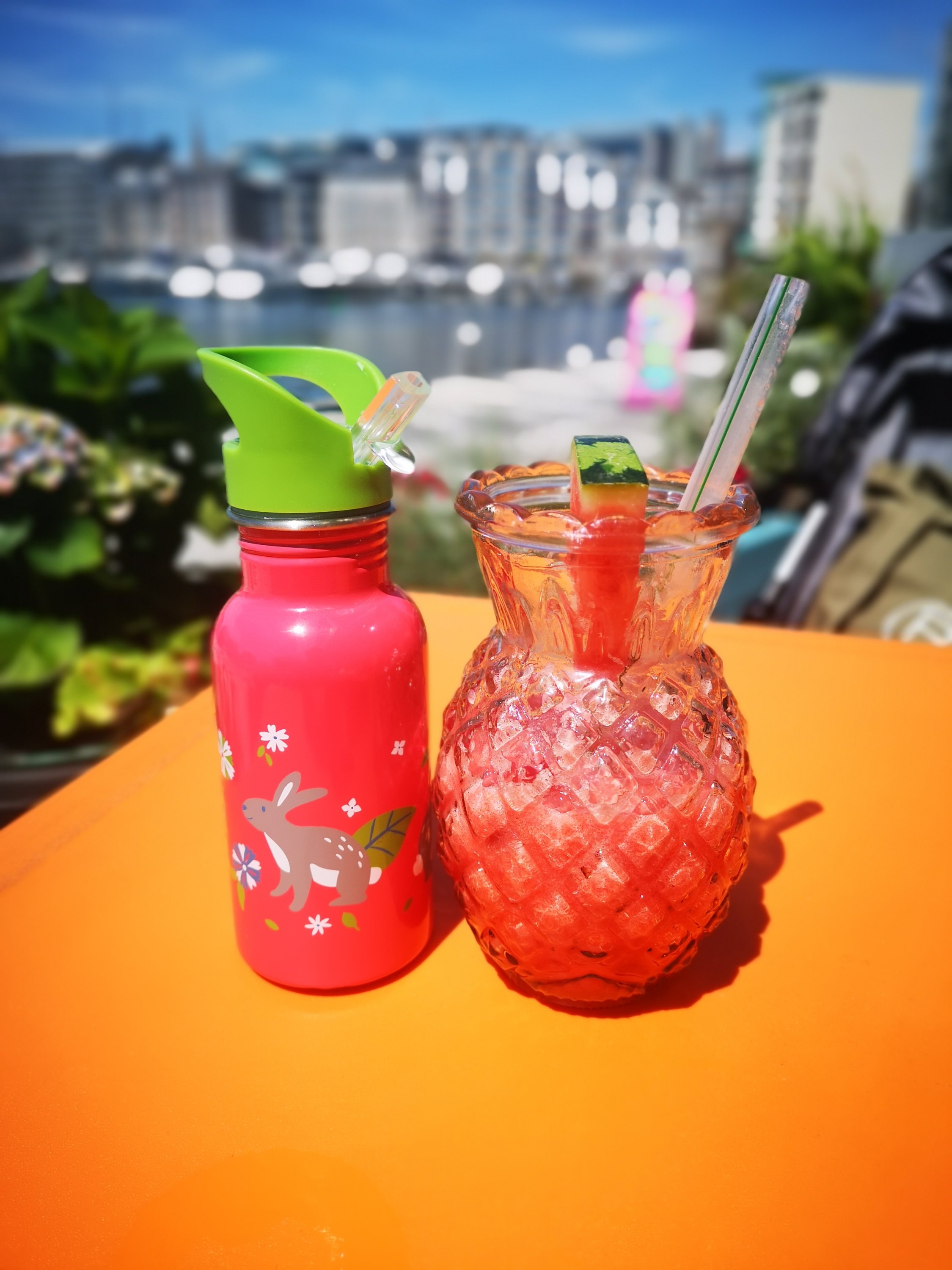 One of life’s coincidences. Juice of the Day, Watermelon, exactly matched VV’s drinking bottle.