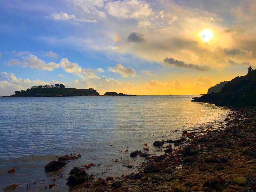 The sun setting on the first of our family days . More than 15,000 steps walked by 5 adults, 2 dogs and one small person. Fabulous to have a day out that just used a quick ferry ride. When we lived in Cornwall, Mount Edgecumbe was a 30 minute car journey. I used to marvel at the families from Plymouth that just casually caught the ferry over for a picnic. Yesterday we did exactly that. Packed up food in our rucksacks and set off on the Cremyll ferry from Admirals Hard to Mount Edgecumbe.