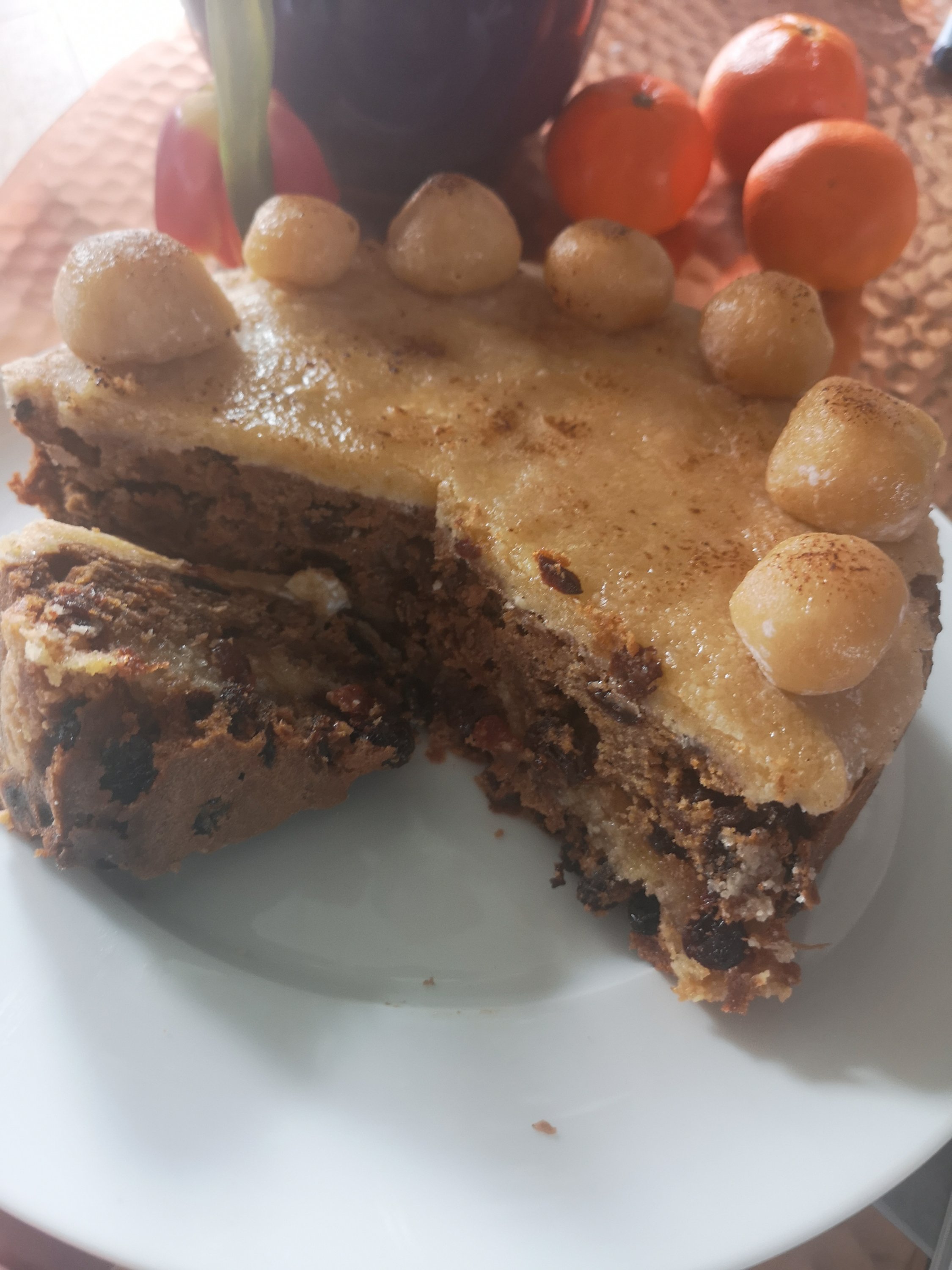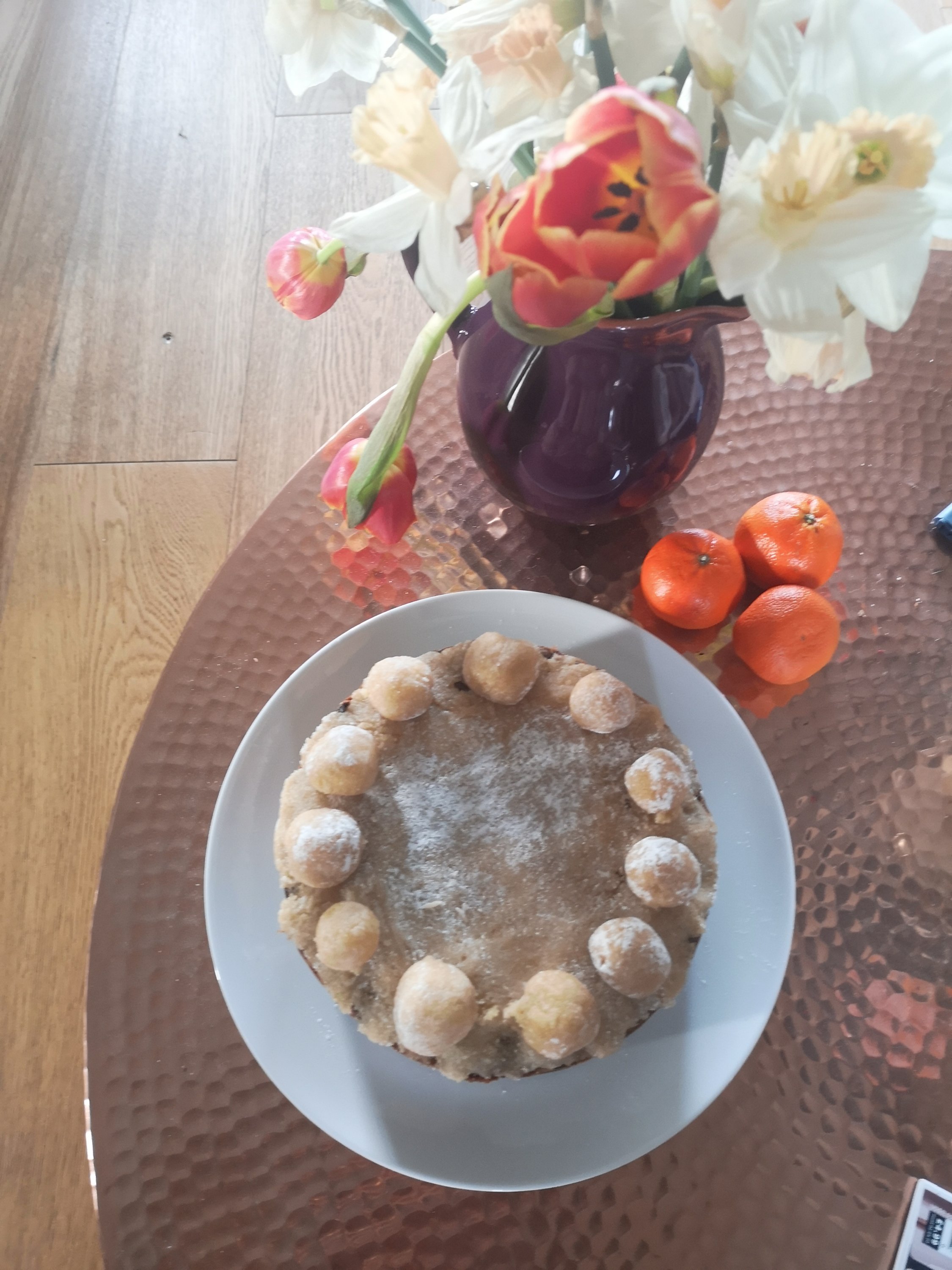 I took before and after pictures just in case the whole blow torching thing went terribly wrong. It didn’t so here is our inaugural Simnel Cake in all its torched glory.