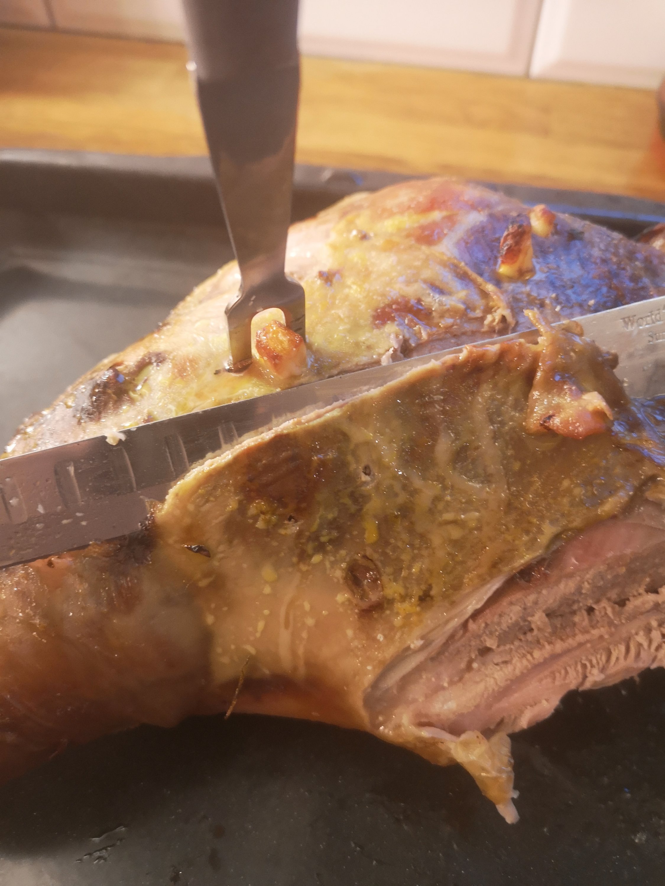 Whilst we were enjoying the fruits of our labours, and those of unknown West Country vegetable farmers and a distant New Zealand sheep farmer, other roasty photographs were tumbling into my in box. The first a fabulous Bird Roast from Becky Reep who lives up the river from us in Cargreen.