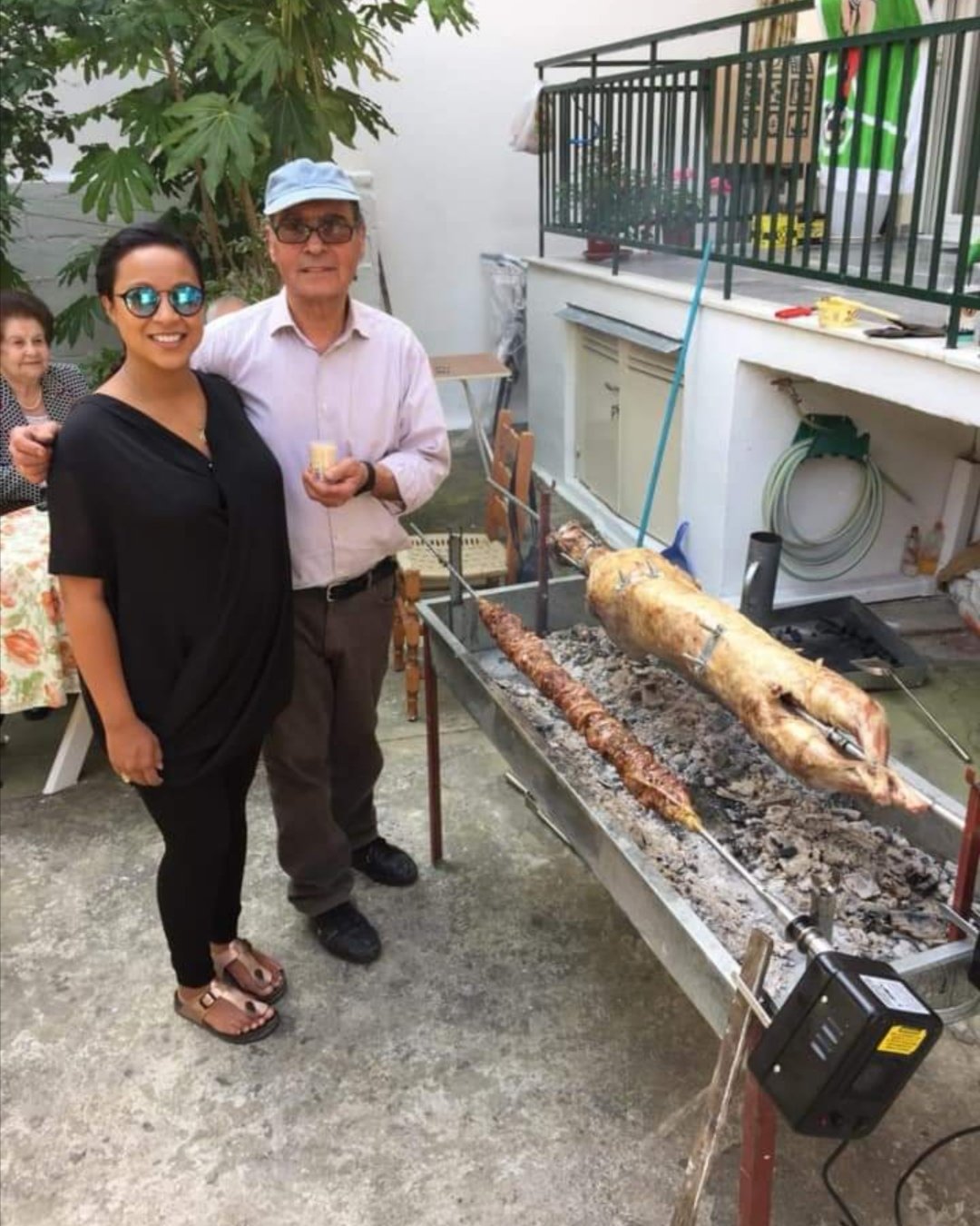 Then on the Sunday they spit roast a Lamb and the other meat in the photo is kokoretsi (which is offal wrapped round the spit with intestines).