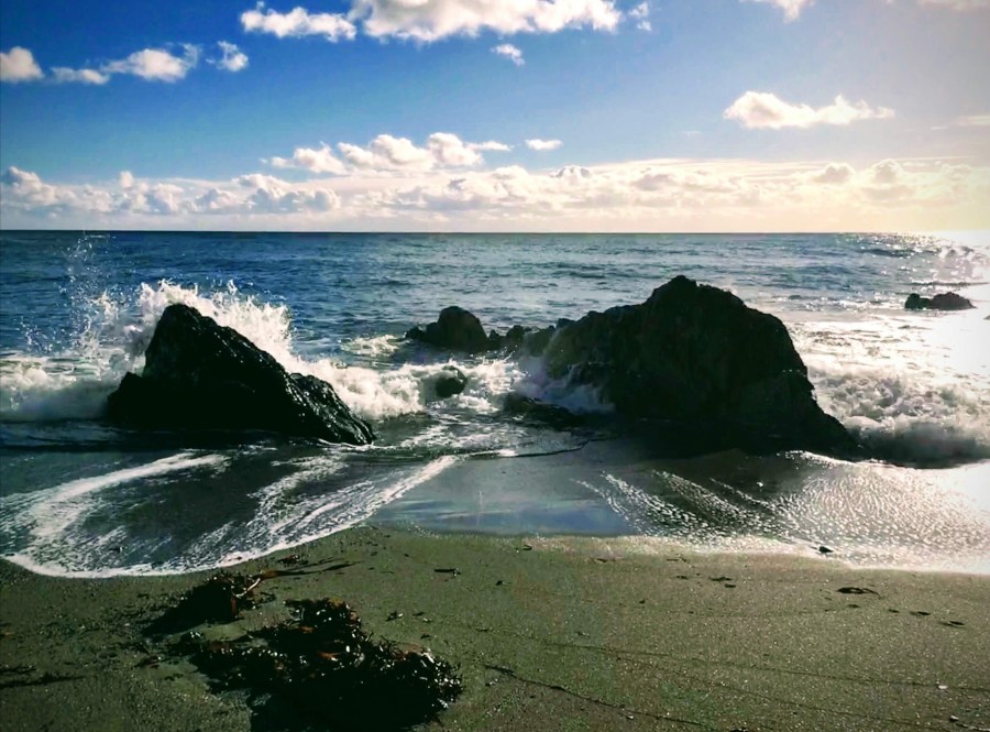 Three generations standing in the flisvos of the retreating tide.