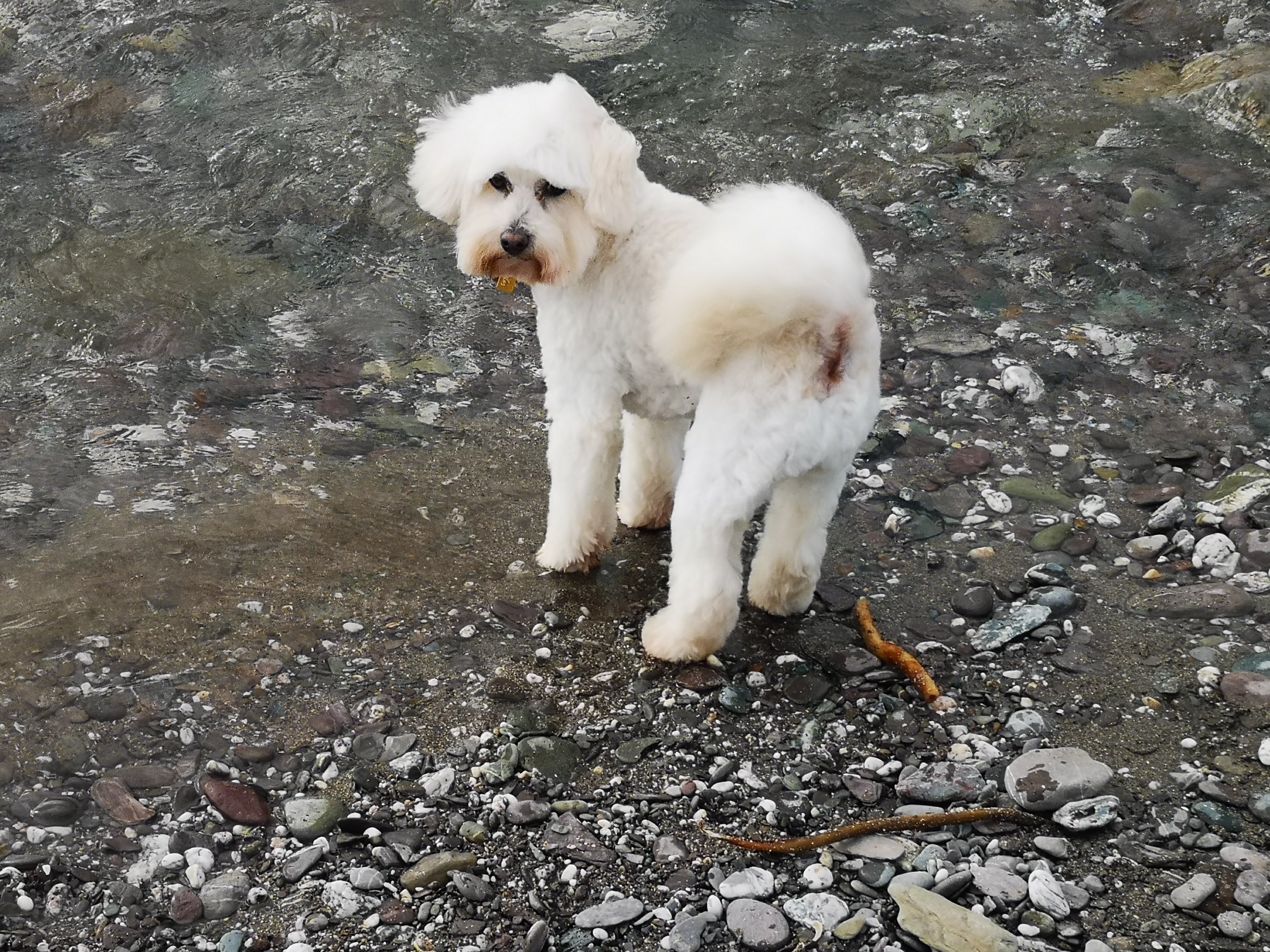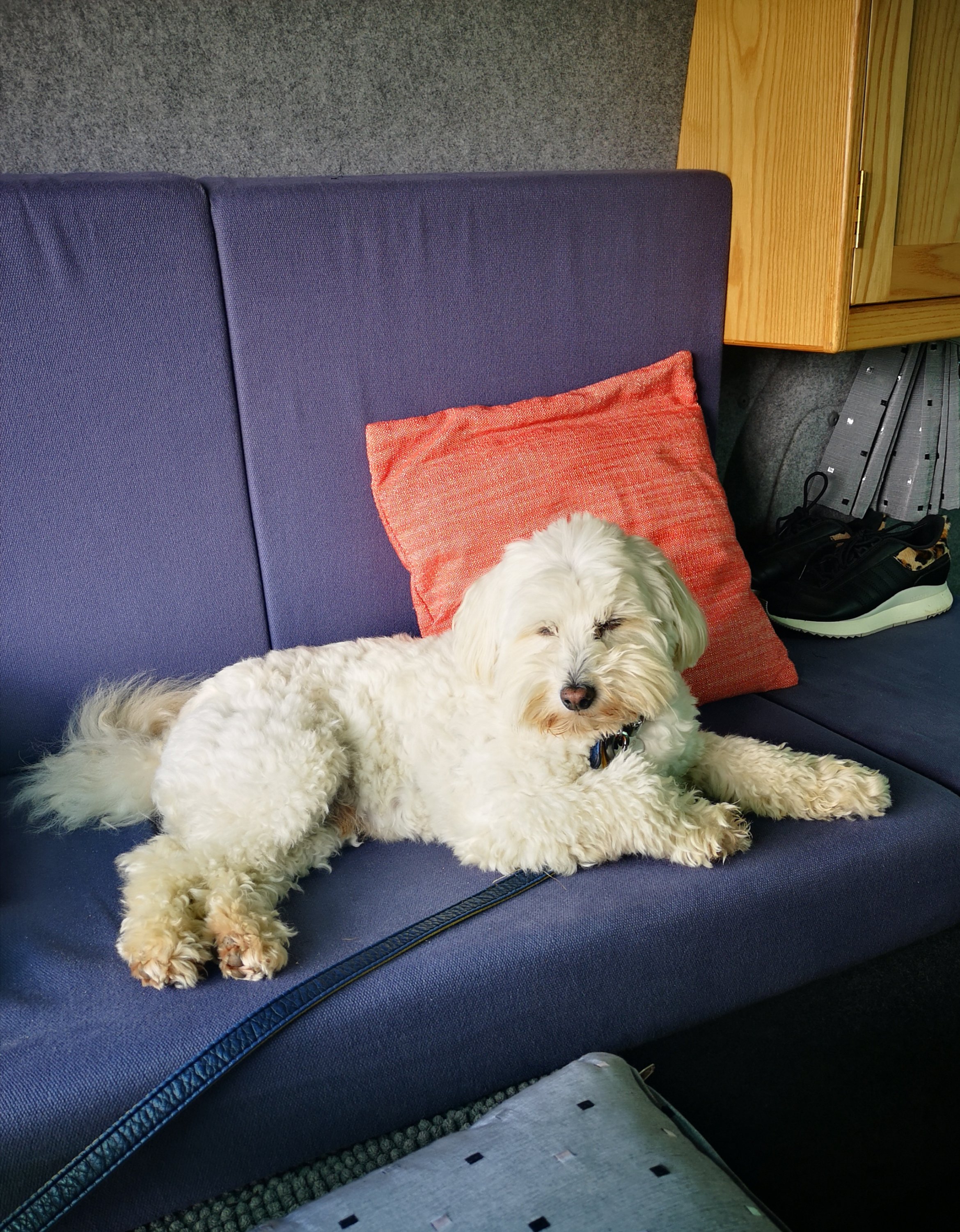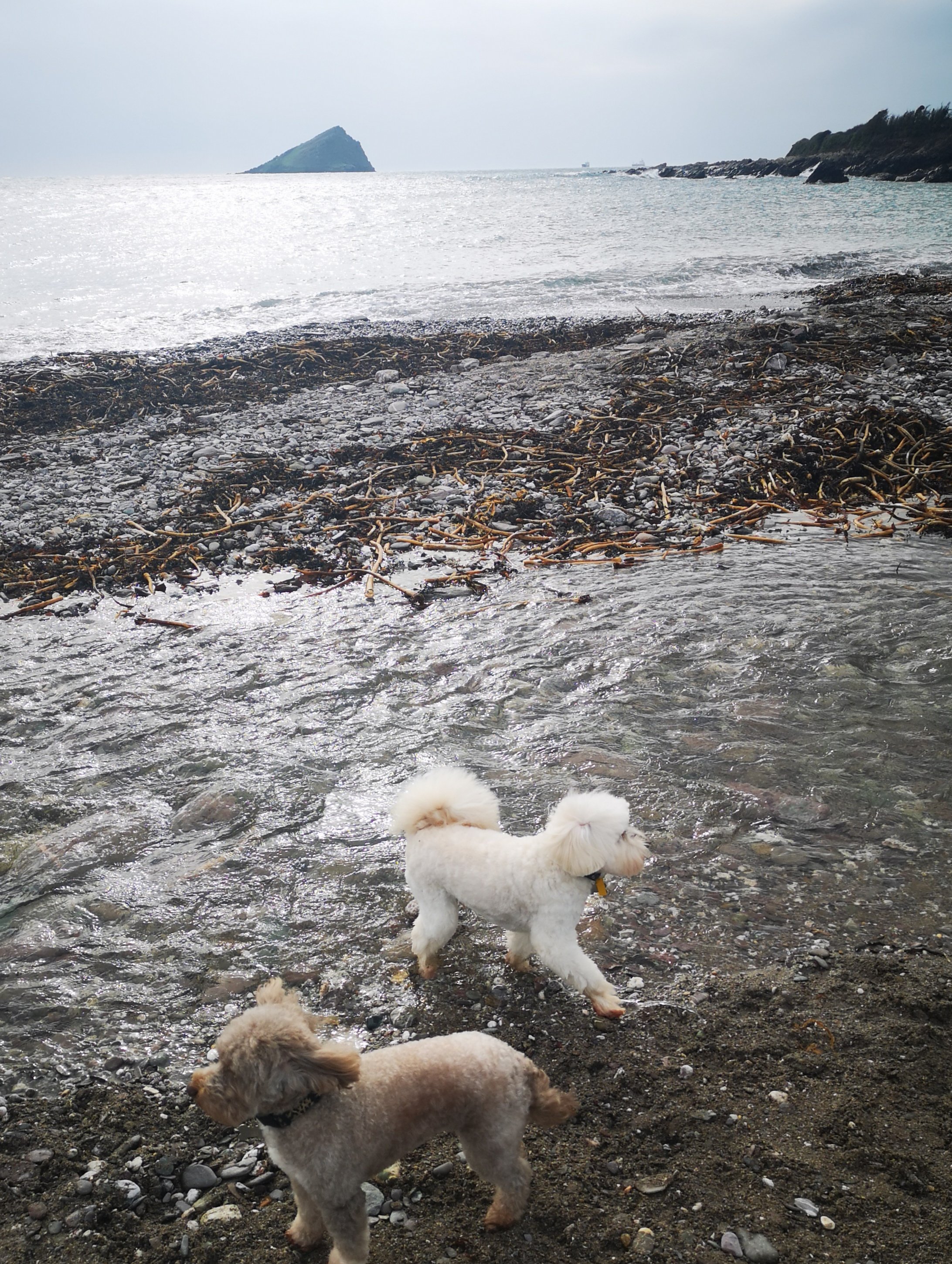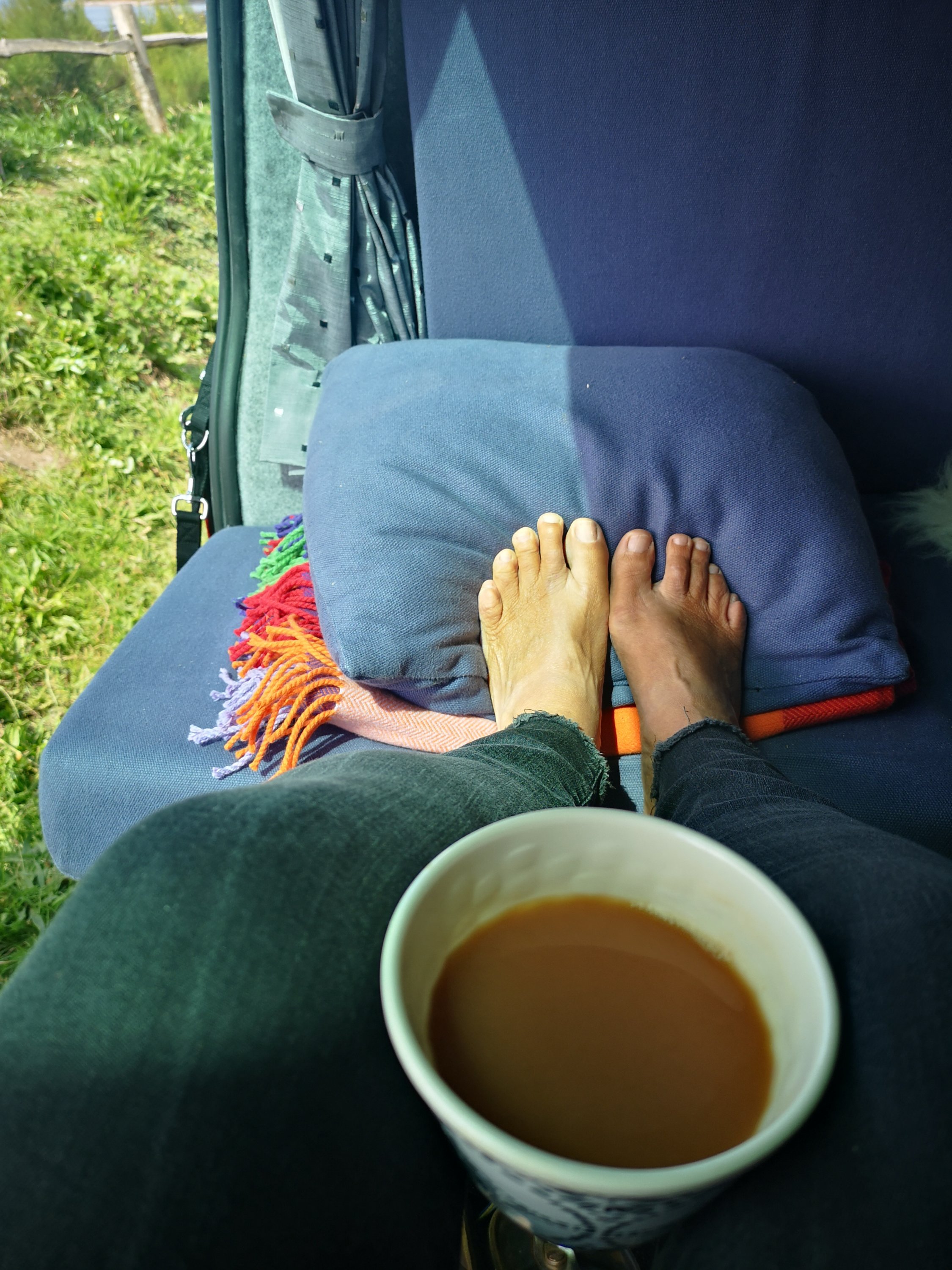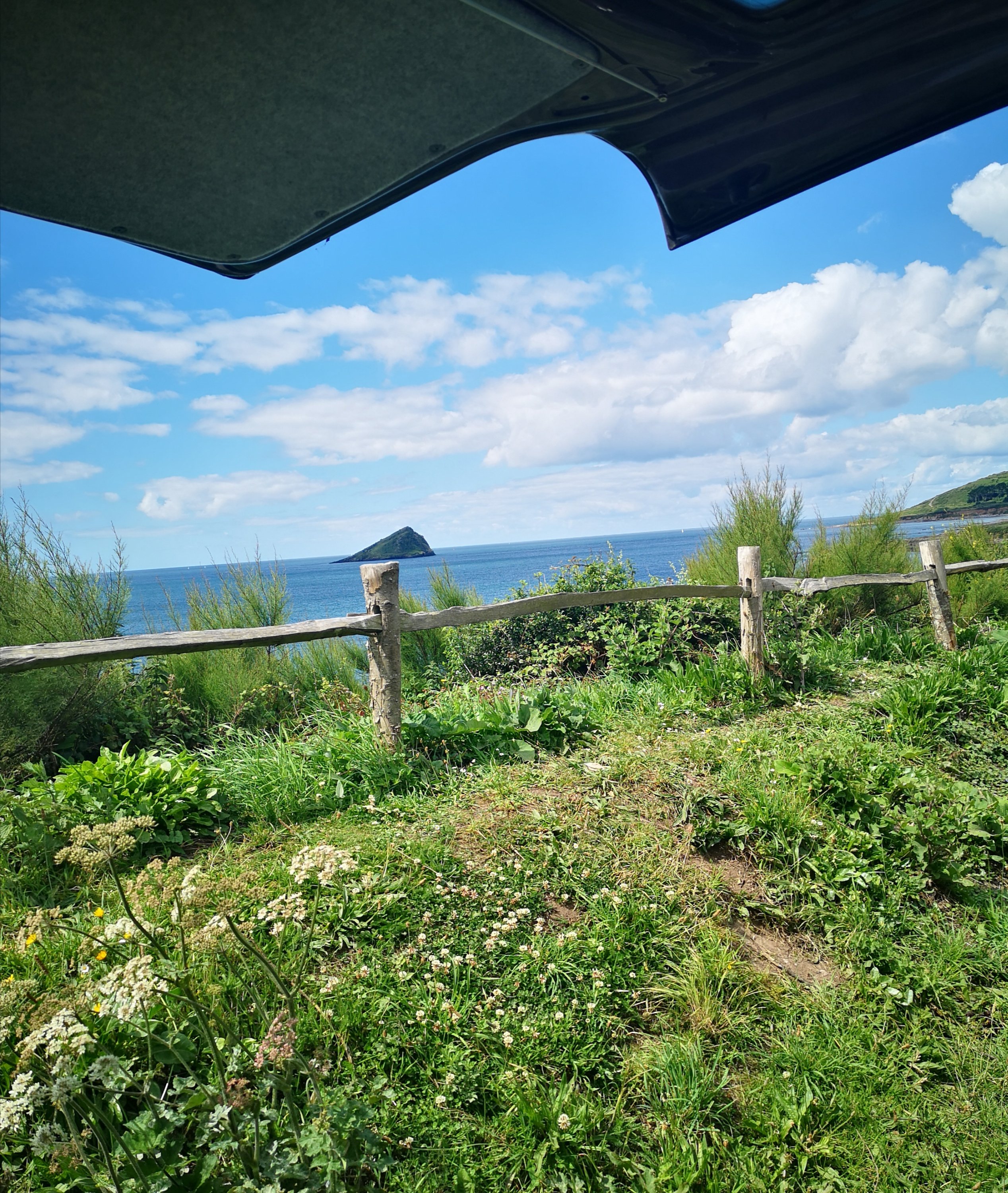 The dogs then got two decent length walks, one on the coast path and one up a valley before they gratefully fell asleep in the car while I read a print edition newspaper and snacked on supermarket pastry. The hours had passed and I handed over some, still tired, hairy hounds to their canine beauticians. Freeing me up for some sea swimming and book reading under lumpen grey skies and no expectation of heat. Typical English Summer recalibrated from the Sunny Summer Sumptuousness of the past month or so. Four hours early for an appointment, no problem. British Summer Time has finally arrived, the rain chased me off the beach. Like any good English person I sat resolutely as the pages of my book darkened with blobs of rain, playing an internal game of brinkmanship, not wanting to be the first person to run to the comfort of a warm dry car. Not wanting,either, to be a drippy wet mess unable to balance on plastic flipflops made slippy by rainfall in a way they never do with saltwater.